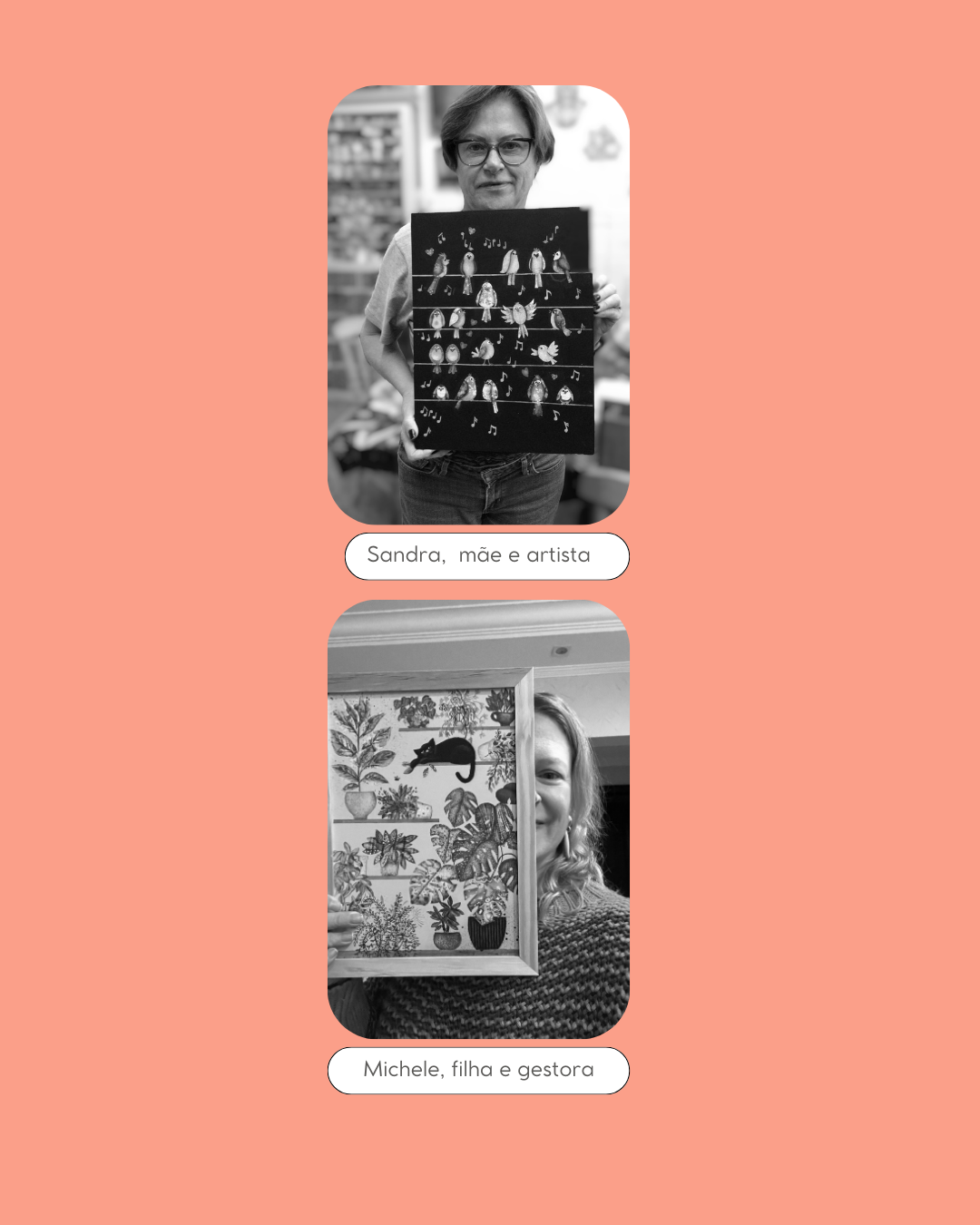 Sandra Bernardi é a artista que cria nossas artes usando a técnica de "mixed media" ou mídia mista, que combina diferentes materiais e técnicas em uma única obra, permitindo a criação de texturas e formas únicas, feitas com muita afetividade e atenção aos detalhes. Os materiais usados por Sandra vão desde tintas acrílicas, lápis de cor, canetas de feltro, colagens, tecidos, jornais, colagens e outros materiais não tradicionais. Para levar essas cores e pinturas para mais gente, transformamos suas telas em prints vendidos online para todo o Brasil.